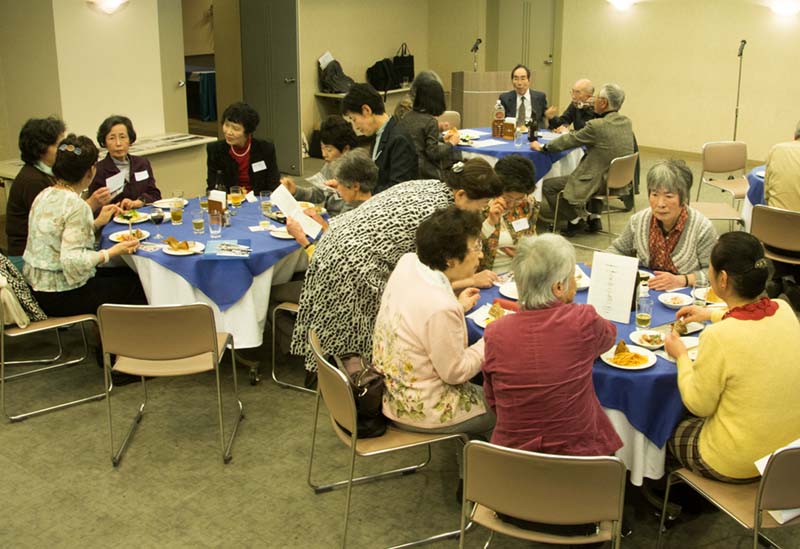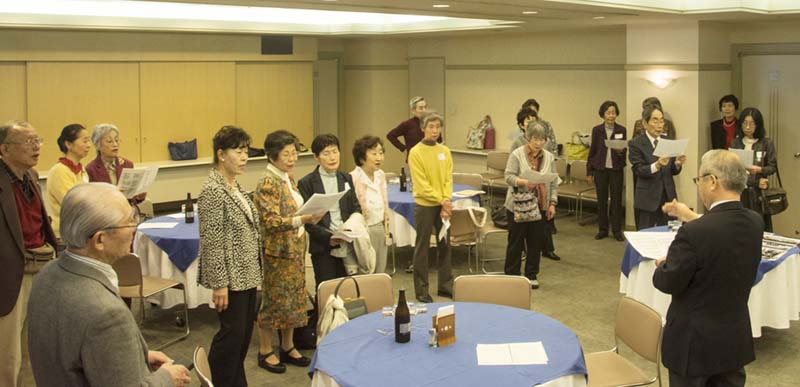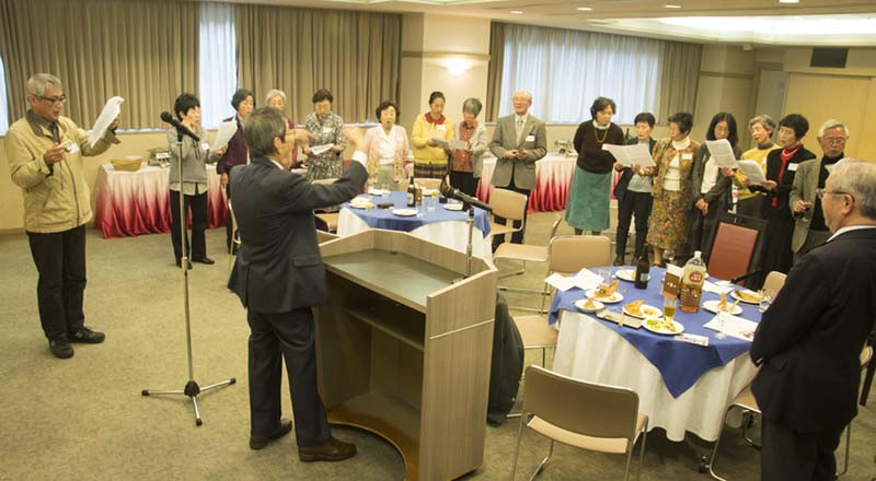 デザートが出て、ひと息ついたところで、今もコーラスで歌い続けている12名が次々と活動の様子を披露し、感嘆や激励の言葉が交わされました。様々な思いが尽きない3時間流れ、再会を約しつつ散会しました。