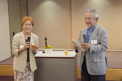 ![]() 神原さなえさんと大森正さんが乾杯の音頭 |