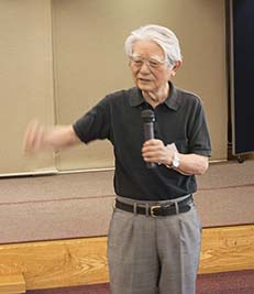 ![]() 津田さんの指導と指揮で2部合唱でエルベ川を歌う |