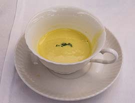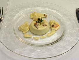 ![]() ”アミユーズ ブーシェ” ホワイトアスパラガスのパンナコッタ 北寄貝、海老と共に |