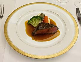 ![]() ”メイン・ディッシュ肉” 黒毛和牛のロースト マデラソース なめらかなポムピュレと温野菜添え |