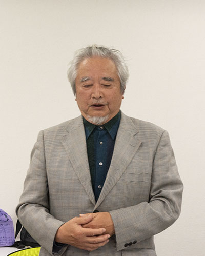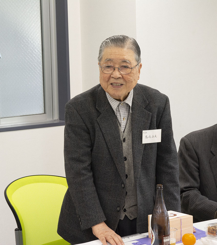 ![]() 高嶋会長の発声で乾杯 | ![]() 高嶋会長の挨拶 |