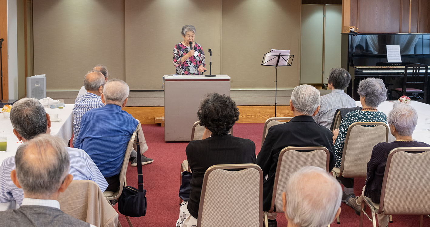 1960年に常任指揮者として招かれ、約15年にわたってクローバーの音楽活動を指導された鈴藤政宏先生が、2023年5月5日に92歳で亡くなられました。 5月8日に執り行われた家族葬に参列した白鳥貞夫氏(39外)からその報告があり、妻の鈴藤和子さん(42外)から寄せられたクローバー会員へのメッセージを代読しました。(鈴藤和子さんのメッセージ PDFファイル)。(ご葬儀での白鳥貞夫氏による弔辞も希望者に配布されました。) 併せて2019年以降に物故された 茂田茂さん(外34)、一寸木絢子さん(栄35)、清水征子さん(栄39)に黙祷を捧げました。 |