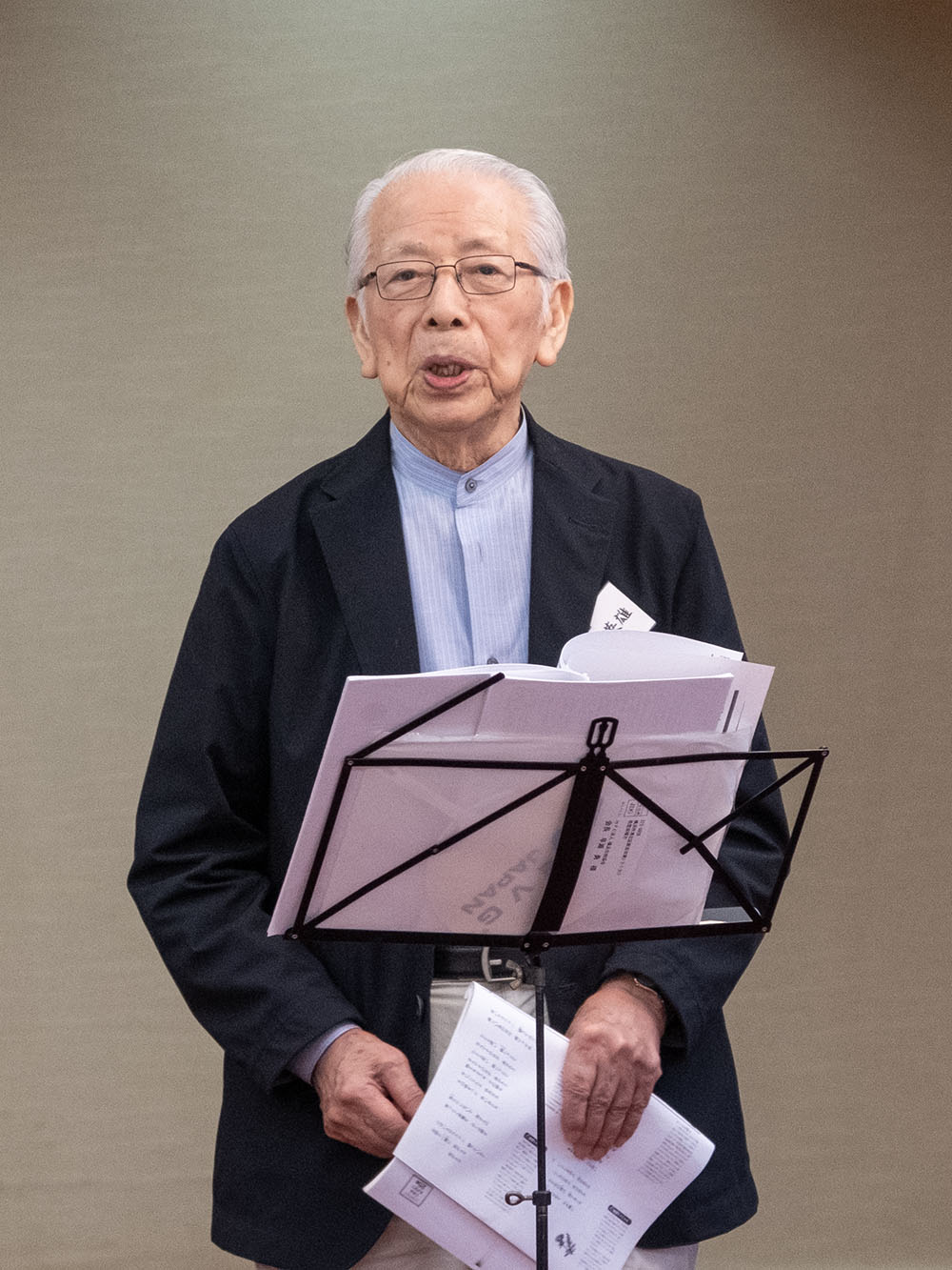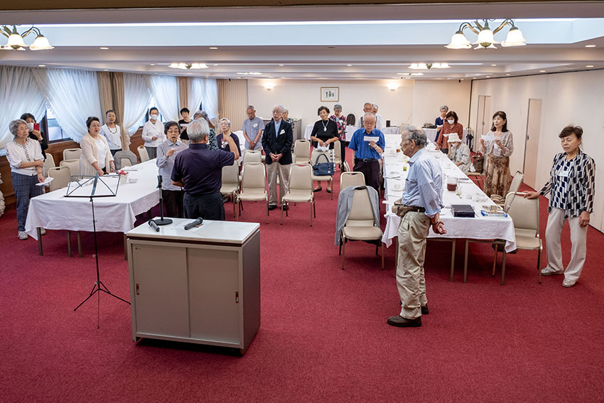 元常任指揮者 鈴政宏先生ご逝去の報告、物故者への黙とうを行いました。